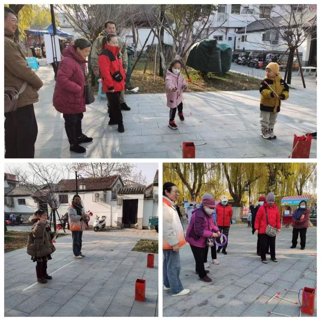 为了让居民在轻松愉快的氛围中加深邻里感情,邻里节活动现场还设置了丰富多彩的游戏环节。其中,最具特色的当属投壶套圈游戏。居民们纷纷排队参与,有的瞄准目标,有的互相交流技巧,现场气氛十分热烈。每当有人成功投中,现场便响起一片掌声和欢呼声。