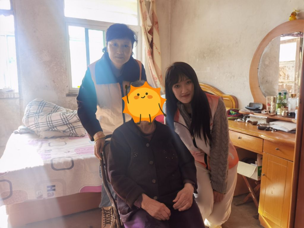 社工与服务对象亲切交流,了解服务对象近期的身体健康状况、生活起居,观察评估其情绪状态,同时耐心解答服务对象家属在申办失能半失能老人长期护理保险方面的疑问。
