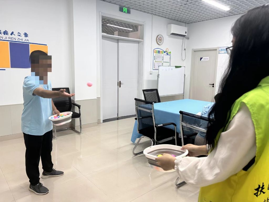 活动伊始,社工带领组员们对上次小组活动内容进行了回顾,并对本次小组活动内容进行了大致介绍,随后就组织组员们开始了本节活动的第一个环节——“投乒乓球”互动游戏。只见,社工手拿小桶,由一位组员往桶里投乒乓球,随着球儿一个个欢快地跃入桶中,现场响起了一阵阵清脆的笑声和热情的欢呼,彰显了小组的活力与凝聚力。