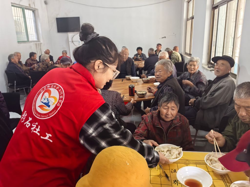 一碗“长者饭”,一颗“慈孝心”,社工们带着食材来到老树峪村幸福院与志愿者一起为老人包水饺,当一盘盘色香味俱佳的饺子被端上餐桌,老人们在饭桌上聊着家常,吃着美味的水饺,脸上洋溢着幸福的笑容。