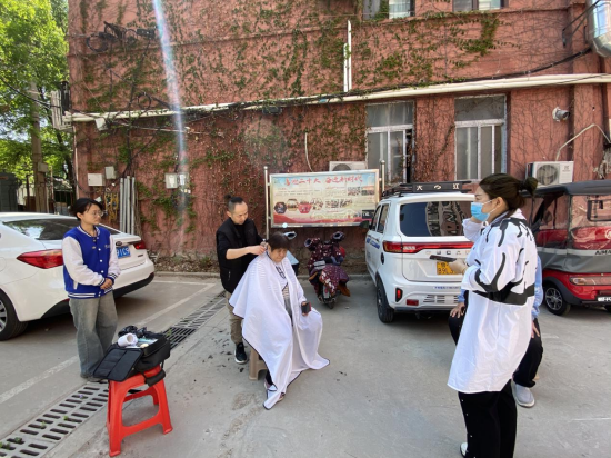 在春日公益义卖区志愿者雅文卖力吆喝着社区居民捐赠的爱心物资,不厌其烦的重复着义卖资金的公益用途;指尖运动会上,社区居民围绕沙盘弹击玻璃球复刻一次酣畅淋漓的童趣欢愉,运筹帷幄之间也畅聊起了儿时趣闻;剪影芳华区,志愿者为辖区老年人进行免费理发,用举手之劳的善意将爱汇聚,把爱传递。