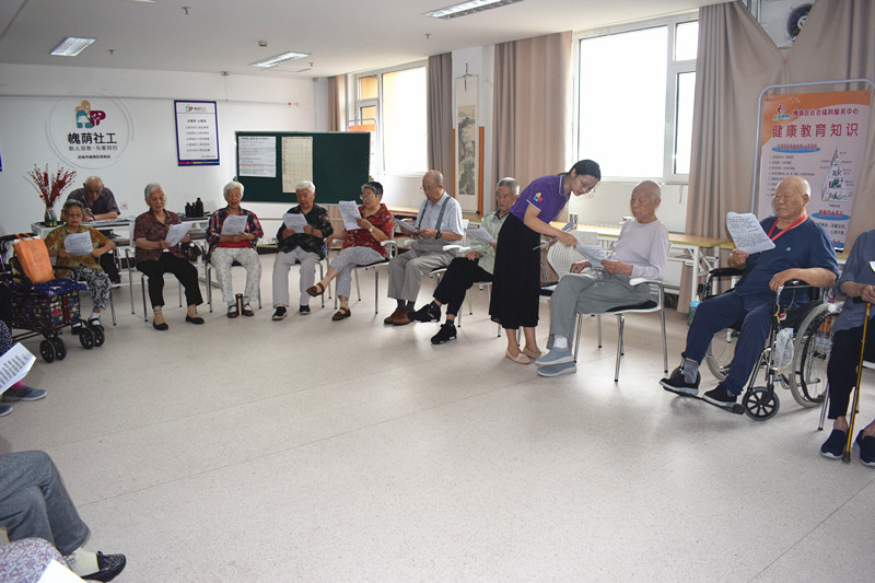 “我最喜欢唱的就是这些歌唱祖国和党的歌曲。”喜爱参加活动的93岁的刘奶奶笑着对社工说。