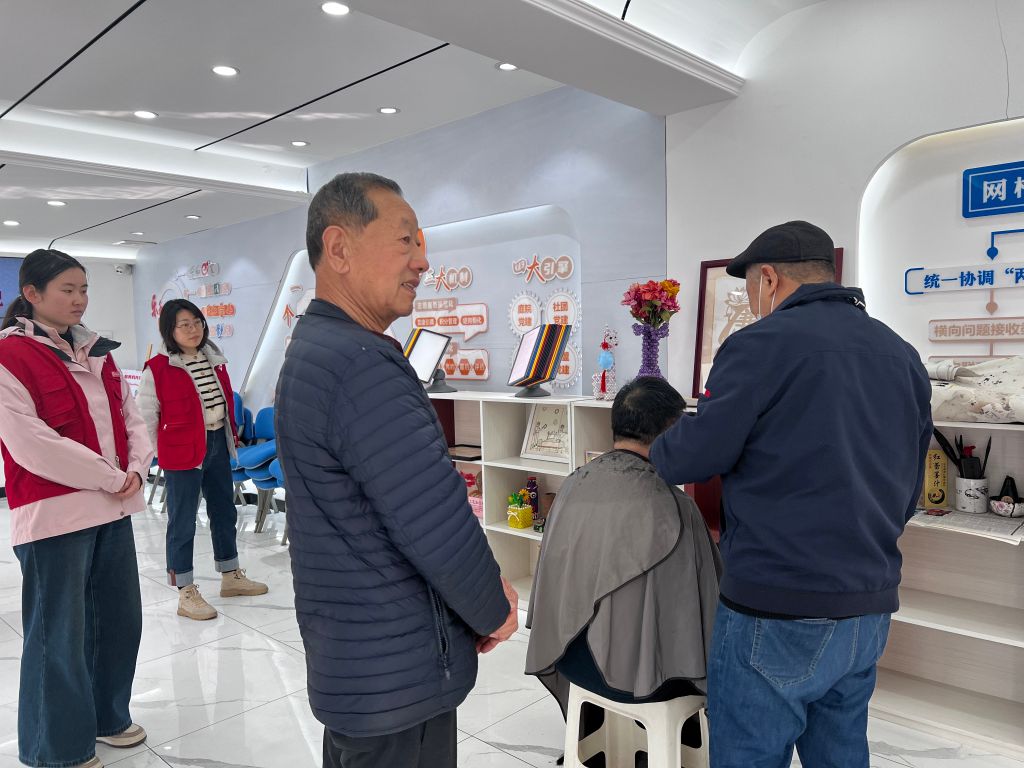 活动现场,理发师热情地与居民交流,根据每个人的需求和喜好设计发型。一把把剪刀上下飞舞,一推一剪间,居民们原本杂乱的头发变得整齐利落,精神面貌焕然一新。居民们一边享受着贴心的服务,一边唠着家常,现场洋溢着温馨欢乐的氛围。
