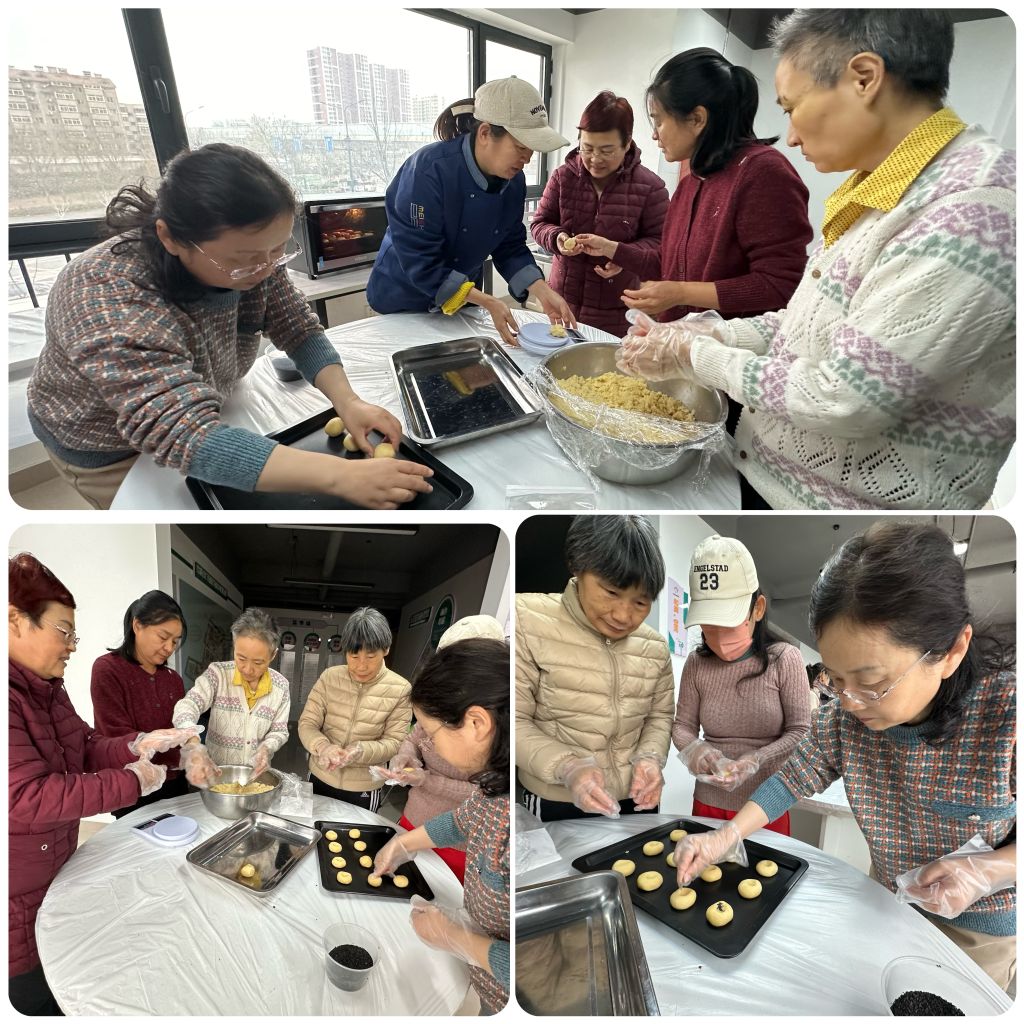 对于桃酥制作而言很多居民们表示初次接触,在了解了桃酥的制作配方、流程和技巧等内容后,大家对制作桃酥产生了深厚的兴趣。对于面粉、油、糖、小苏打等物品的调配比例、搅拌方向都有讲究,学习了制作要领后,接下来就是大家的动手时间了。在随老师的指导下,居民们行动起来,称重、揉团、按压、点缀,忙得不亦乐乎,每一步都凝聚着大家的用心与期待。