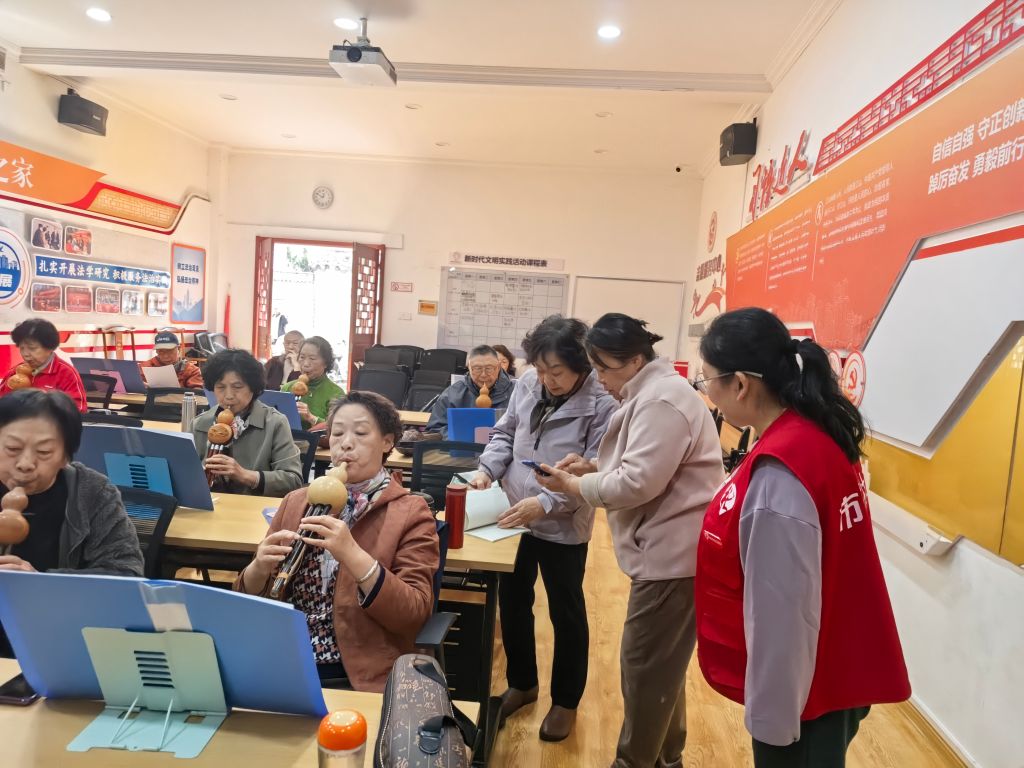 活动伊始,社工们满脸笑容地站在门口,热情迎接每一位前来学习的老人。他们主动与老人搭话,温情回顾上节课所学内容。“张大爷,您上节课吹的那段旋律可太有感觉了,还记得是怎么练的不?”“李阿姨,您上次对那个音符的处理特别细腻,给大家分享分享经验呀。”亲切的话语让温馨的氛围迅速在现场弥漫开来。随后,社工巧妙地引出本节课乐曲分段练习的核心内容,为后续学习做好了铺垫。