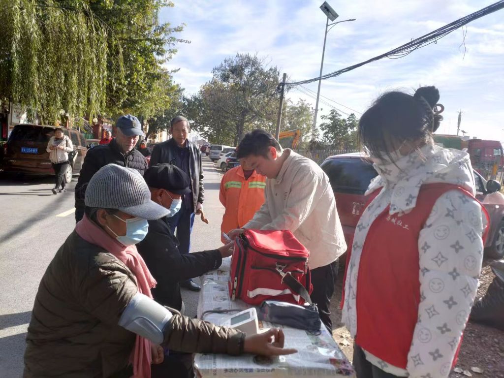 郭店街道社工站以郭店街道大集为出发点,将“推进五社联动,关爱一老一小”社会工作服务宗旨和“新时代文明实践志愿活动”相结合,建立了“社工站+志愿者”常态化联动服务模式,联动街道民生保障部门和社区,在公益集市上开展“政策宣讲”、“爱心义剪”、“1+1乐居服务包测血压血糖”、“困难问题收集”等志愿服务活动。