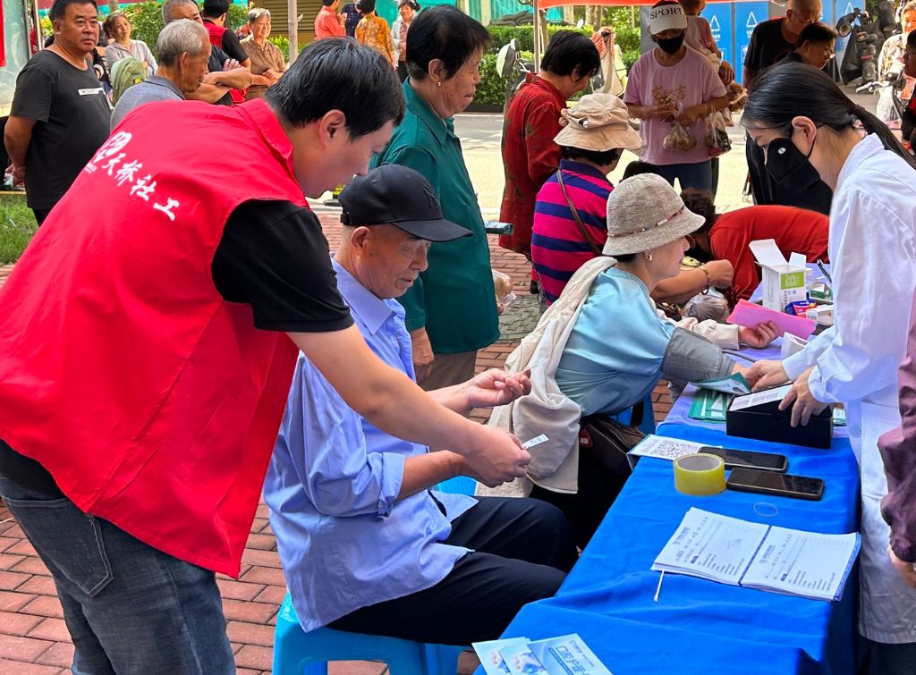 活动当天,社工和医护人员早早地来到了泺口街道的社区广场,现场早已人头攒动,许多老年人闻讯而来,希望能借此机会了解自己的健康状况。社工和志愿者们热情接待每一位前来参加义诊的老人,引导他们有序排队,确保活动顺利进行。