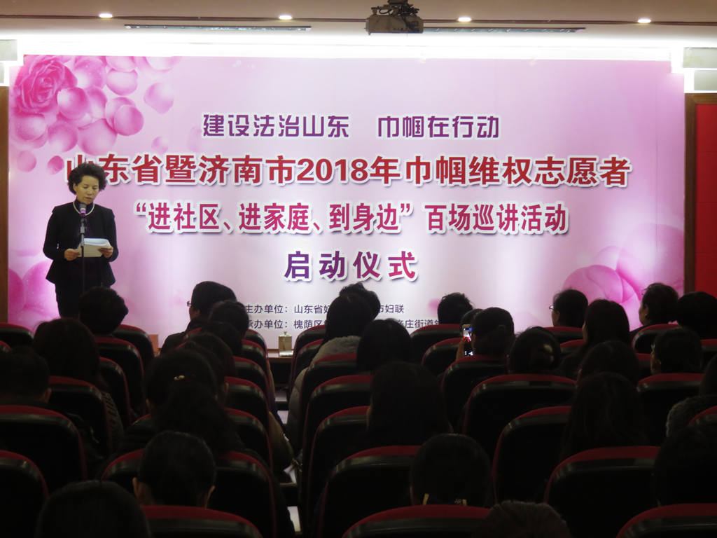 为深入贯彻落实党的十九大精神,推动习近平新时代中国特色社会主义思想和依法治国理念深入家庭、深入人心,今天,省、市妇联于南辛庄街道举办山东省暨济南市2018年巾帼维权志愿者“进社区、进家庭、到身边”百场巡讲活动启动仪式,旨在通过宣讲十九大精神、宣传法律知识,提升广大妇女群众和家庭成员的政治意识和法治意识,引领她们积极参与到依法治国的具体实践,为建设经济文化强省和大、强、美的省会济南贡献“半边天”的力量。