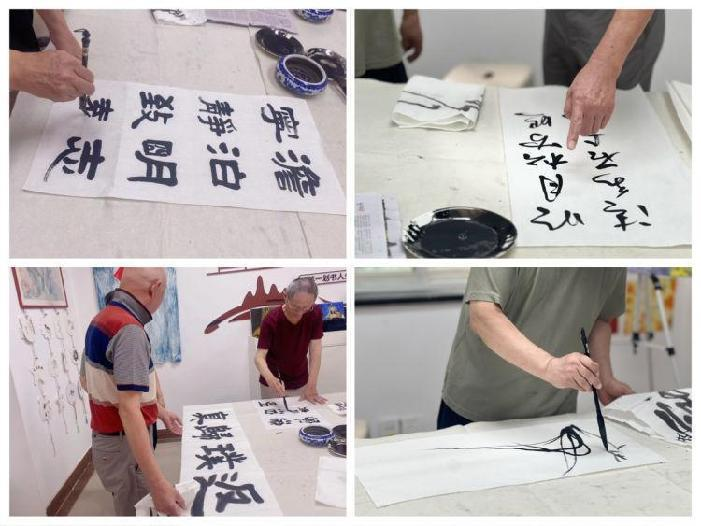 社工提前准备,铺好毛毡、备好宣纸、墨水、给组员们分发了书法工具,让大家尽情发挥,以笔墨传情,挥洒人生。随后,大家都投入到了潜心创作之中,一支支墨笔行云流水,一幅幅苍劲有力的作品跃然纸上,现场书香味浓郁。郭大爷的澹泊明志,宁静致远“”、王大爷的“返璞歸真”书法作品笔酣墨饱、气韵生动,每个汉字都沉淀着中华千年文化的精髓,书法作品的欣赏犹如在知识的海洋里获取精神滋养,领悟书法与生活的奥义。不一会儿,组员纷纷拿起自己的作品进行展示交流,现场气氛其乐融融,作品内容丰富多彩,充分展示了传统书法的艺术。