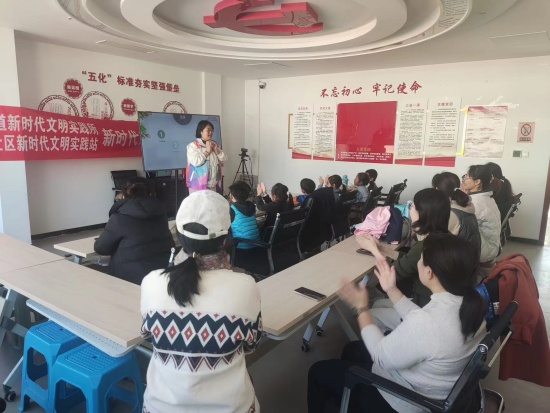 11月18日,宣讲队在社工的陪伴下早早来到了黄金时代社区,“张老师,我把上周家长的问题整理了一下。”“可以,我再看下,一会我再做深入讲解。”为了保证活动的高效进行,社工为社会组织和社区居民搭建起一个良好的沟通桥梁,整理家长意见、总结活动内容。同时宣讲活动在社工的整理下分别设立了“科学教育做智慧父母”“你想要的孩子和你的孩子”“我的幸福我做主”“如何培养孩子优秀品质”等宣讲主题,依托新时代文明实践所站开展宣讲。用小故事诠释大道理,从青春期孩子的性格表现入手,分析成因,教给家长控制情绪的好方法。不仅如此,活动也以孩子的视角和心理给家长们提出宝贵建议,传授家长如何增强孩子的自信心,如何与孩子进行沟通,如何尊重孩子的“金钥匙”。