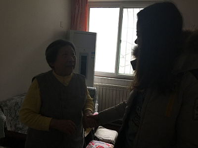 2017年2月21日,济南建达“银龄伙伴”项目组开展了“敲敲爱”空巢家庭高龄长者探访活动。下午两点,项目组社工来到其中一位独居空巢老人李阿姨家中,平日里老人很少出门,社工之前与其联系过,通常会以麻烦社工为由拒绝社工入户探访,由于多次电话探访,今天社工再次联系到李阿姨,表示想入户探望的心愿,老人欣然接受。