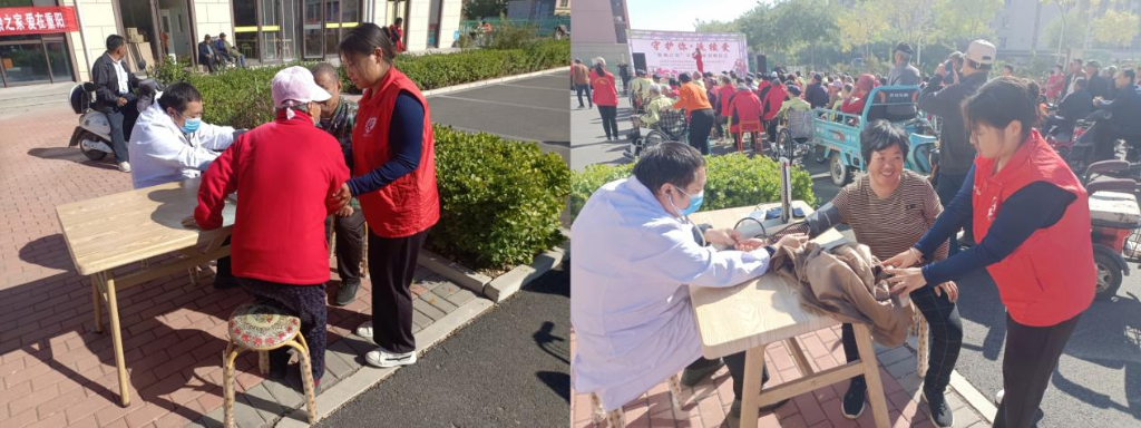 “大娘,慢点啊,我扶着您走吧”,社工小心翼翼的搀扶一位老人坐下量血压,“谢谢你啊小姑娘,哎呦咱们现在国家政策太好啦,经常有这些活动,能看看节目开心,还有医生能及时的看看身体状况,还能听到医生说一些对身体好的养生知识,多亏了国家啊,政策好啊”。老人开心的说着,脸上露出了太阳般的笑容,让大家心里都暖暖的。活动期间,卫生部门工作人员为老年人提供免费的义诊服务,提供量血压服务以及讲授一些实用的健康养生知识,解决了他们的实际健康问题。社工主动搀扶腿脚不便的老人入座,社工与老年人面对面的陪伴交流,增进了彼此之间的理解和信任,倾听老年人的心声,给予他们精神上的慰藉和支持,让他们感受到社会的关爱和温暖。