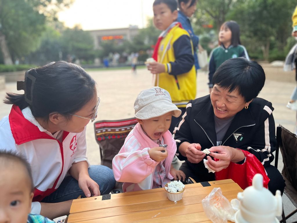 活动开始,由社工站主持,介绍支持参与此次活动的辖区内各个社团及爱心单位,首先由0531街舞社团进行热场,利落的舞蹈动作,飒酷的舞蹈风格点燃了现场气氛,大朋友、小朋友们都赞不绝口、纷纷喝彩。随后,山东管理学院晨曦志愿者团队的青年志愿者们为居民朋友们带来《阳光彩虹小白马》、《做个大人吧》两首歌曲,甜美悠扬的歌声引得群众们驻足欣赏、不禁合唱。紧接着,山东艺术学院舞蹈社团的志愿者们为大家带来民族舞蹈,柔美的身姿,轻盈的舞步,充分展现着民族文化的积淀,收到围观群众的掌声和赞扬。伴随着欢快的氛围,小朋友们在小胖手烘焙坊的餐吧车旁,在社工及工作人员的指导和讲解下,了解基本的裱花技术,小朋友们纷纷跃跃欲试,开始动手在蛋挞、纸杯蛋糕上挤上甜滋滋的奶油,用彩色麦片、饼干进行装饰,每个人都展现丰富的创意和想象力,制作独一无二的纸杯蛋糕。最后由独具匠心工作坊的两位小朋友,分别为我们带来歌曲《小花朵》和古筝演奏《红梅赞》,红梅花儿开,多多放光彩,琴弦在指尖轻轻跳动,悠扬的乐音在空气中弥漫,让我们回忆起革命岁月,激发我们对民族文化的热爱与自豪。