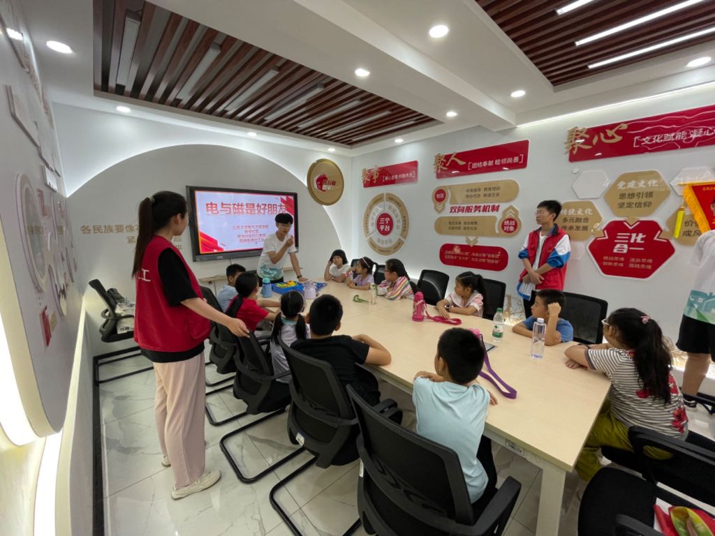 为推动“社会工作与志愿服务”融合发展,丰富辖区儿童暑期精神文化生活,7月11日上午,舜耕街道社工站联合山东大学电气工程学院、舜华社区妇儿家园依托新时代文明实践站开展“电与磁是好朋友”儿童科学主题活动。