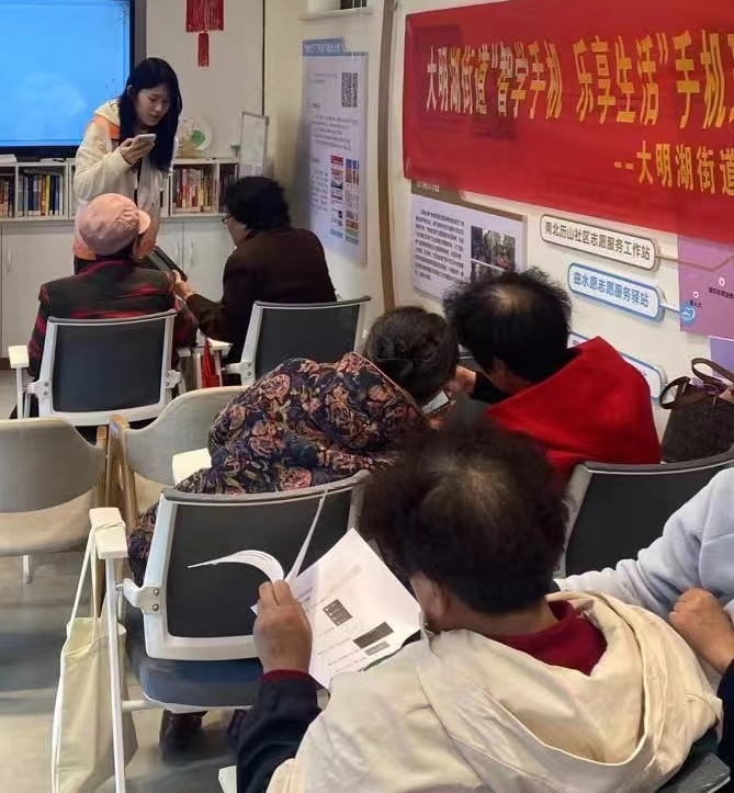 在这个科技飞速发展的时代,老年人的学习和生活也不能被忽视。为了帮助老年人更好地适应数字化生活,大明湖街道社工站联合明湖志爱项目组开展的社会工作老年手机班小组于2024年4月9日成功举办了第二期,本次活动旨在响应老年人的需求,专门教授老年人学习抖音、快手。共有9位独居高龄老人、空巢老人参加本次活动。