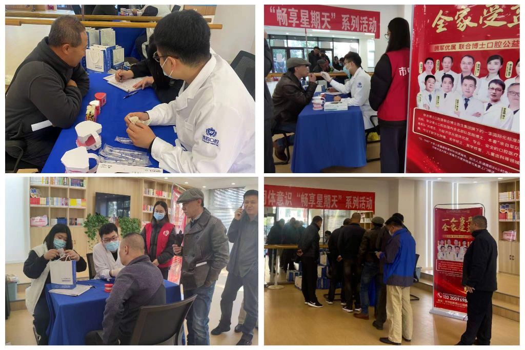 义诊现场,前来问诊的居民络绎不绝,联合博士口腔的医生们认真聆听大家提出口腔方面的疑问,耐心地答疑解惑并为居民免费提供测量血压、口腔检查,仔细了解居民的口腔状况。针对群众存在的口腔问题,一一做了详细的解答。根据居民不同的口腔问题从口腔卫生、生活习惯、日常饮食等方面给予健康指导,并给出针对性的治疗建议,社工帮助医生将牙线、漱口水等小礼品分发给排队的大家,王大爷说:“平时不咋关注口腔健康,年纪大了去医院排队就诊不方便,牙齿的问题只好一拖再拖,此次义诊刚好帮到了我。”