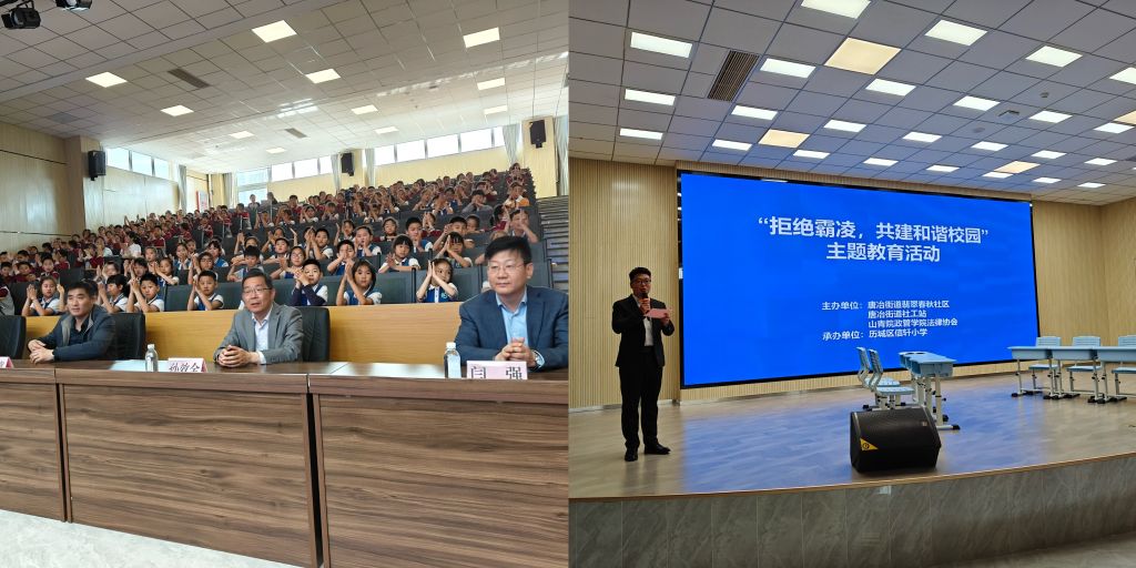 随后,社工站协同山东青年政治学院法律协会创新采用“沉浸式法治剧场”模式,将法律条文转化为可感知的互动体验。当看到参与者通过《沉默的证词》剧本演绎出语言霸凌的隐蔽性时,志愿者特别设置“法律解密”环节,由专业社工引导同学们对照《未成年人保护法》第39条,理解“侮辱性语言”“社交排斥”等行为的违法性质。这种独特的形式,成功突破传统说教模式,使抽象法条转化为具象认知。“以前被同学起外号,我只会默默忍受,现在知道可以向老师和家长求助!”活动后,参与情景剧演出的二年级学生王同学说。