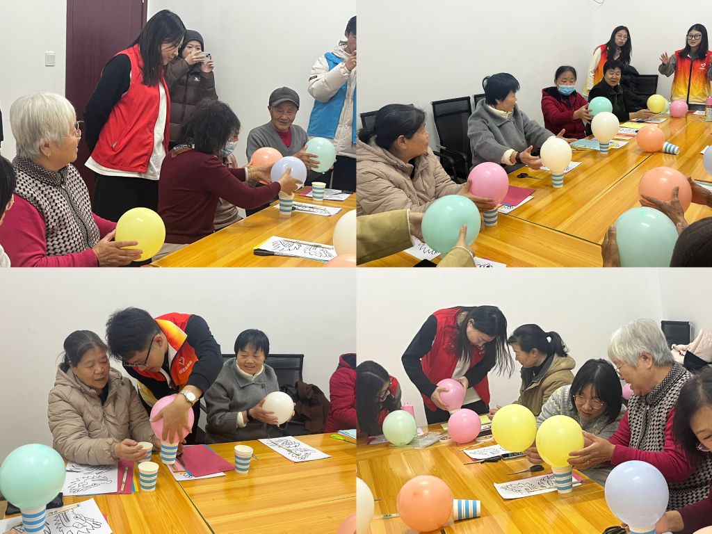 活动开始前,社工首先组织开展了一项名为“气球接龙”的游戏,大家分成两队,通过协作用气球传递纸杯。现场欢声笑语不断,简单趣味小游戏无形中使组员间的关系更加亲密。