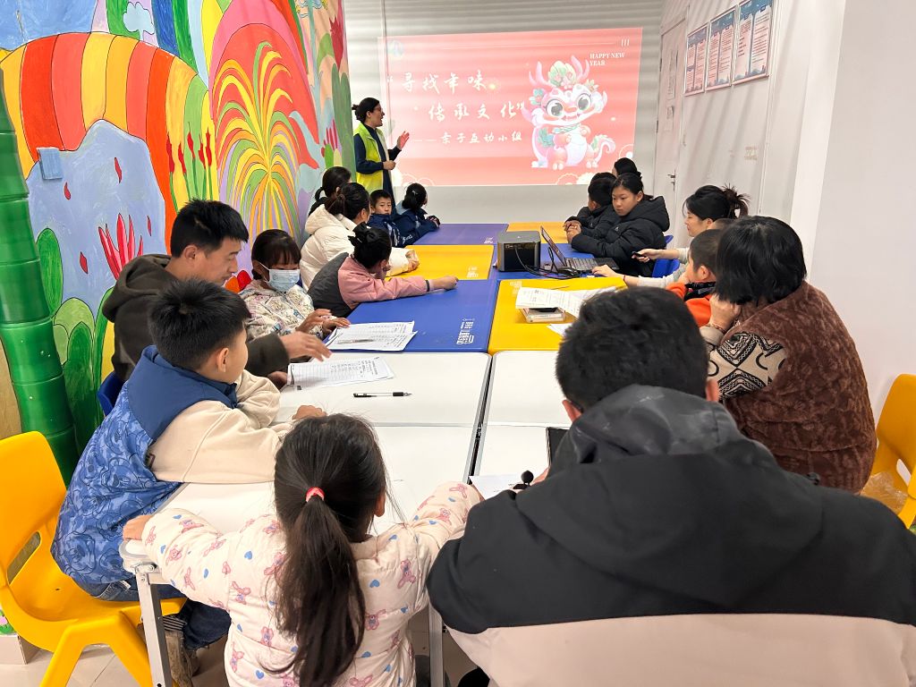 春节的脚步声“哒哒哒”地响起,一年一度的团圆时刻即将来临!家里的孩子们眼巴巴地盼望着远方工作的父母归来。而崔寨街道辖区的流动儿童和困境儿童们更是对这个特别的日子翘首以盼,他们渴望父母那迟来的温暖拥抱。借着元旦的契机,崔寨街道社工站特地开展“寻找年味 传承文化”亲子互动小组,旨在增进亲子间的互动与沟通,让孩子们在愉快的氛围中感受到浓浓的年味和中华文化的独特魅力。