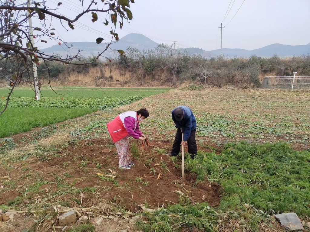 “多亏有你俩帮忙,要不这些胡萝卜我还得刨几天!”双泉镇高庄村留守老人黄爷爷感激地说。2023年12月6日,双泉镇社工帮助黄爷爷解决了大雪前抢收胡萝卜的难题。