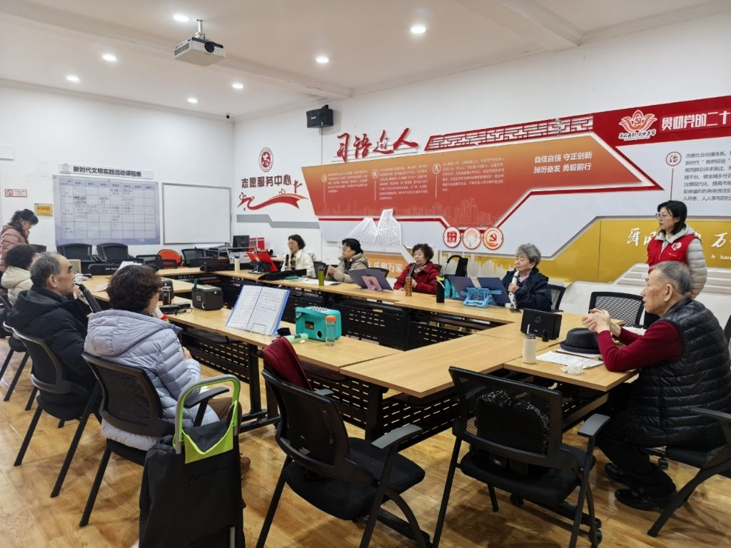 在练习环节,社工组织老人们分组交流,促进大家相互学习、共同进步。小组里气氛热烈,老人们积极分享自己的学习心得,彼此鼓励。有的老人虽年事已高,但学习热情丝毫不减,在社工和老师的鼓励下,不断挑战自己。