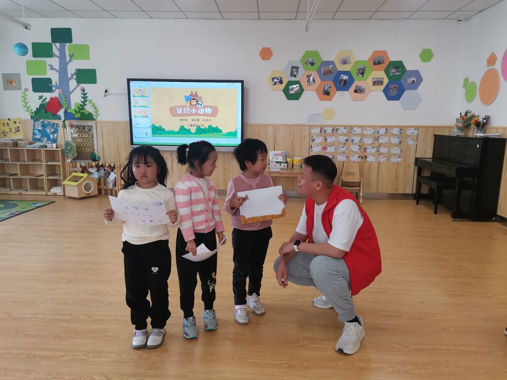 绘本阅读环节,志愿者选取了充满奇思妙想的《借尾巴》。志愿者用极富感染力的声音,配合灵动的表情和动作,将故事里小动物们借尾巴的有趣情节生动演绎。孩子们目不转睛,被深深吸引,随着故事的推进时而紧张,时而欢笑,沉浸在奇妙的动物世界中,极大地激发了他们对阅读的热爱。