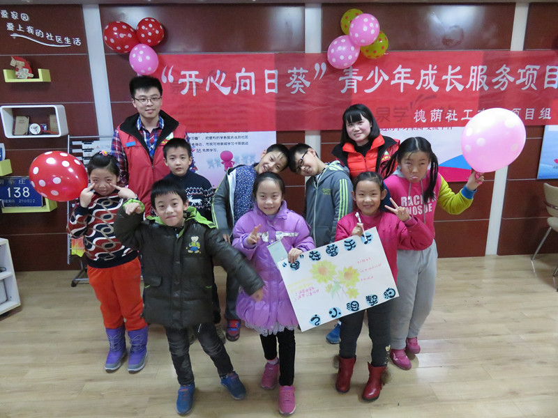 在暑期夏令营活动取得显著效果,辖区青少年及家长的热切期待下,项目组于1月20日下午2点在南辛庄中街家园中心二楼举行“开心向日葵”之“童”在蓝天下寒假冬令营开班典礼。