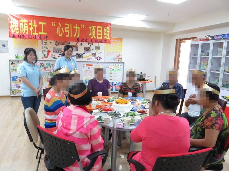 上半年失独家庭已成功开展三次活动,一起经历春季出游的欢快、母爱花开的温情、端午蜜粽的和美,社工与服务对象、服务对象彼此交流日渐加深,逐步培养起深厚的感情。为进一步巩固专业关系,并为服务对象提供交流的机会,社工于6月24日上午在南辛庄家园中心二楼为失独家庭开展“夏日炎炎凉来伴 寿比南山祝福浓”庆生活动,借助庆生这种和乐、温馨的活动形式,增进服务对象之间的归属感和认同感。