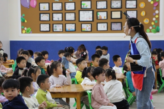 活动伊始,老师以生动活泼的方式,带领小朋友们一起走进绘本《跑跑镇》的奇妙世界。这本书以其独特的创意和幽默的故事情节深受孩子们喜爱,老师通过夸张的表情、丰富的肢体语言和趣味提问,引导孩子们思考:“小猫和小鹰撞在一起会变成什么?”“汽车和轮船相遇又会发生什么?”孩子们纷纷举起小手,踊跃回答,孩子们天马行空的想象力让现场气氛格外热烈,每一个奇思妙想都引来阵阵掌声,课堂充满了欢声笑语。
