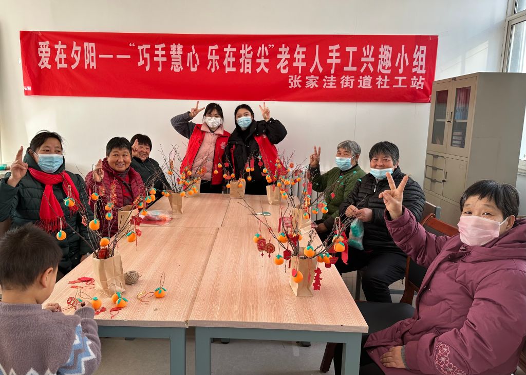 为满足辖区内老年人爱好手工艺术和参与社会生活的需求,搭建一个可以让老年人展示自我、相互交往的平台,12月2日至12月23日,张家洼街道社工站在小洛庄村活动室开展了“爱在夕阳”之“巧手慧心 乐在指间”老年人手工兴趣小组。