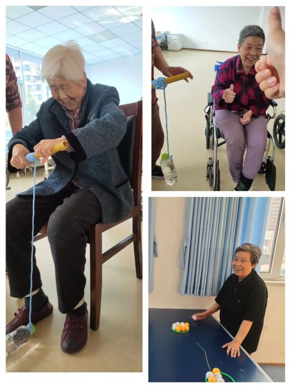 活动开始,社工详细讲解了此次趣味运动会各个项目的活动规则,在场的老人都非常期待。活动过程中,老人们兴趣十足,看着桌上弹跳的乒乓球,个个笑容满面,仿佛回到快乐的童年时代。个别老人对自己参与的项目不太自信,但在社工及工作人员的鼓励下,顺利完成整体游戏,别提多开心啦!“闺女再拿几个圈,我再套一轮!”张奶奶直言今天的游戏很好,玩的很开心。老小孩很容易满足,简简单单的小游戏就能获得满满的成就感和自豪感。