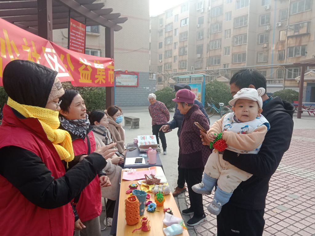 活动现场,一排排色彩斑斓的手工针织作品让社区居民纷纷驻足,社工们耐心讲解针织技巧。公益市集还特别设置了多个便民服务展位,包括口腔检查、中医把脉、全科体检等健康义诊服务,以及法制宣传教育和预防一氧化碳中毒居家安全宣讲。志愿者们热情地为社区居民提供各类服务,从医疗咨询到法律援助,每一个小小的善举都带给人们触手可及的温暖,提升了社区居民的幸福感。