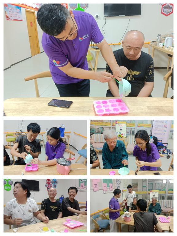 当手工皂最终成型并脱模时,每个人的脸上都洋溢着成就感和喜悦之情。这些手工皂不仅是他们辛勤劳动的结果,也象征着他们对未来美好生活的追求和努力。通过这样的活动,美里湖街道社工站不仅帮助残疾人掌握了新的劳动技能,也为他们的心灵注入了一股强大的正能量,鼓励他们在未来的道路上继续前进,勇敢追寻自己的梦想。