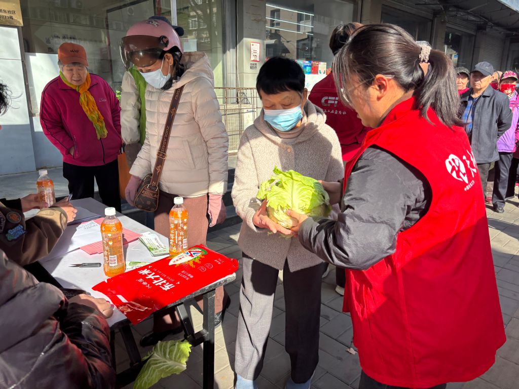 社工早早到达活动现场,与爱心企业一起搬运、分装好即将发放的蔬菜。前来领菜的老人一拨接一拨,社工化身“现场指挥官”与“秩序守护者”,引导老人有序排队,耐心解答领取流程,保障活动的井然有序。领到蔬菜的老人们脸上洋溢着幸福的笑容,社工站的服务也获得大家一致称赞。
