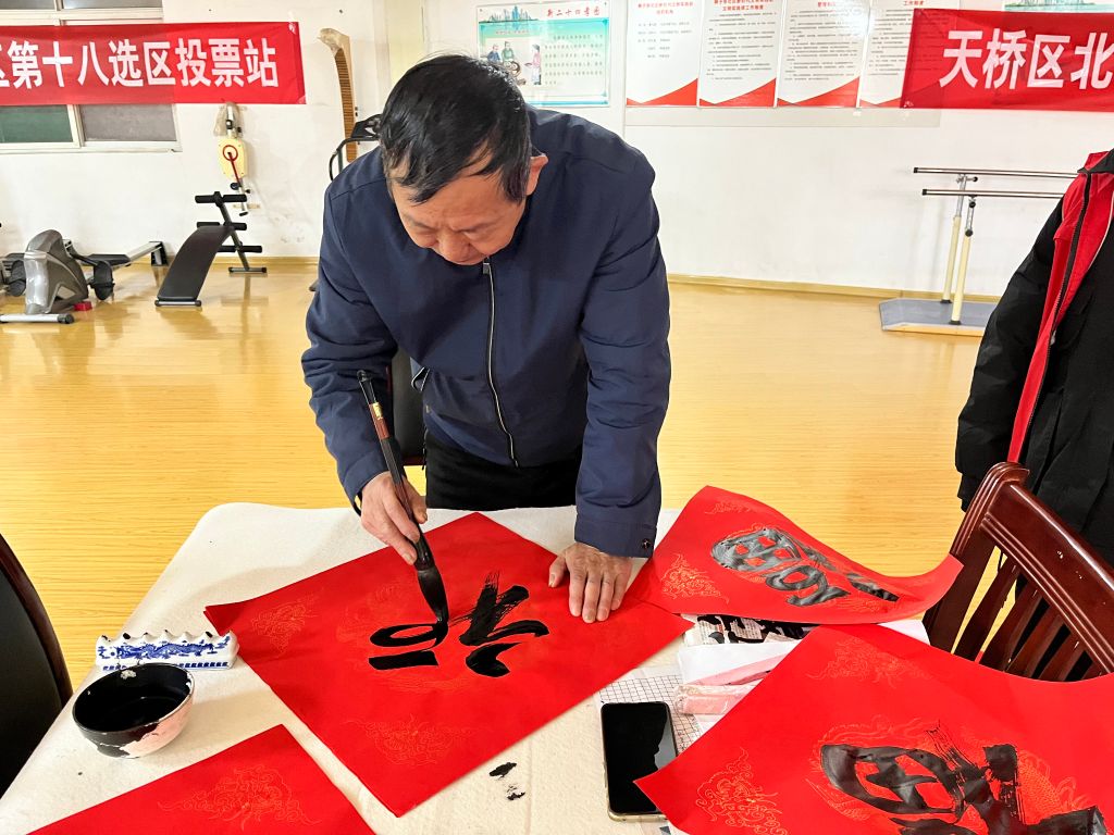 社工站在狮子张社区的活动室里,布置得温馨而雅致。桌上摆放着笔墨纸砚,书法爱好者们正准备挥毫书写新春的祝福。他们的笔下,一个个“福”字跃然纸上,带着新春的喜庆与祝愿。这些“福”字不仅是对新年的美好祝愿,更是社工站对社区老人们的深切关怀。老人们陆续来到活动现场,他们或领取“福”字,或欣赏书法作品,每个人的脸上都洋溢着幸福的笑容。