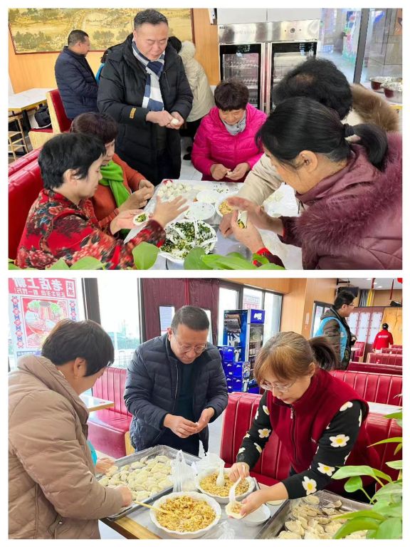此次比赛分为初赛和复赛环节。在初赛环节,大家相互交流包饺子的经验,切磋包饺子的技巧,欢声笑语凝结成冬日里最温暖的祝福。不一会儿的工夫,一个个皮薄馅大的饺子就摆满了桌子。在饺子饱满美观的前提下,初赛中的前六名选手进入复赛,开始新一轮的角逐,并在洋溢着祥和快乐的节日气氛决出胜负。