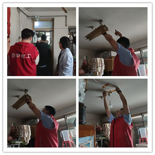 社工在了解情况后,积极链接英雄山文化市场的慈善志愿资源,寻求专业帮助。英雄山文化市场了解情况后,及时安排专业电工志愿者负责维修事宜。4月19日下午,社工与英雄山文化市场志愿者一起前往张老师家中,为其改造电路,更换灯泡,并详细检查其他安全隐患,耐心叮嘱用电安全事项,并嘱咐有事可以随时联系。“我家的灯终于又亮了,你们真的把我说的话都记在心里了,真的谢谢你们啦,你们辛苦啦!”张老师眼里含着泪光,连连感谢。