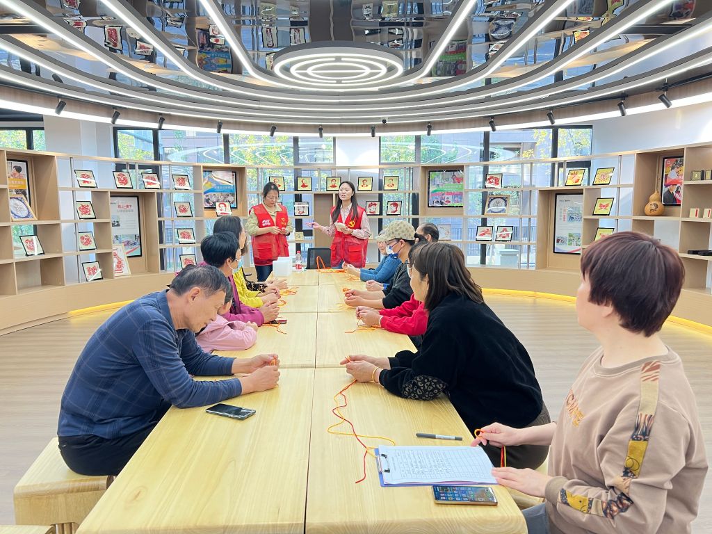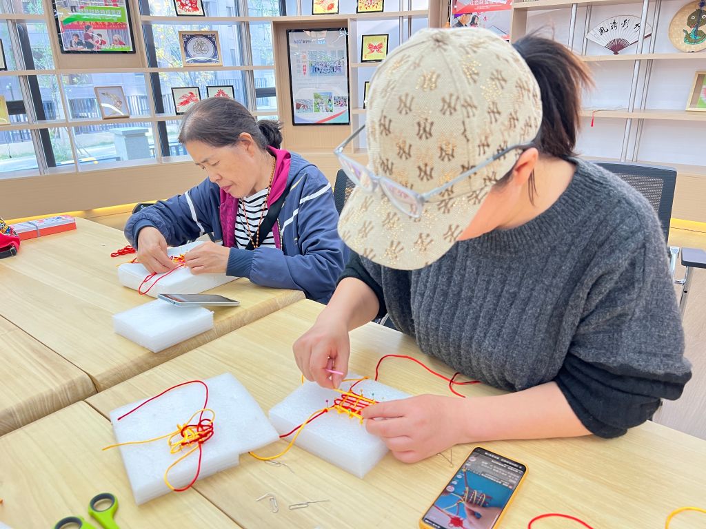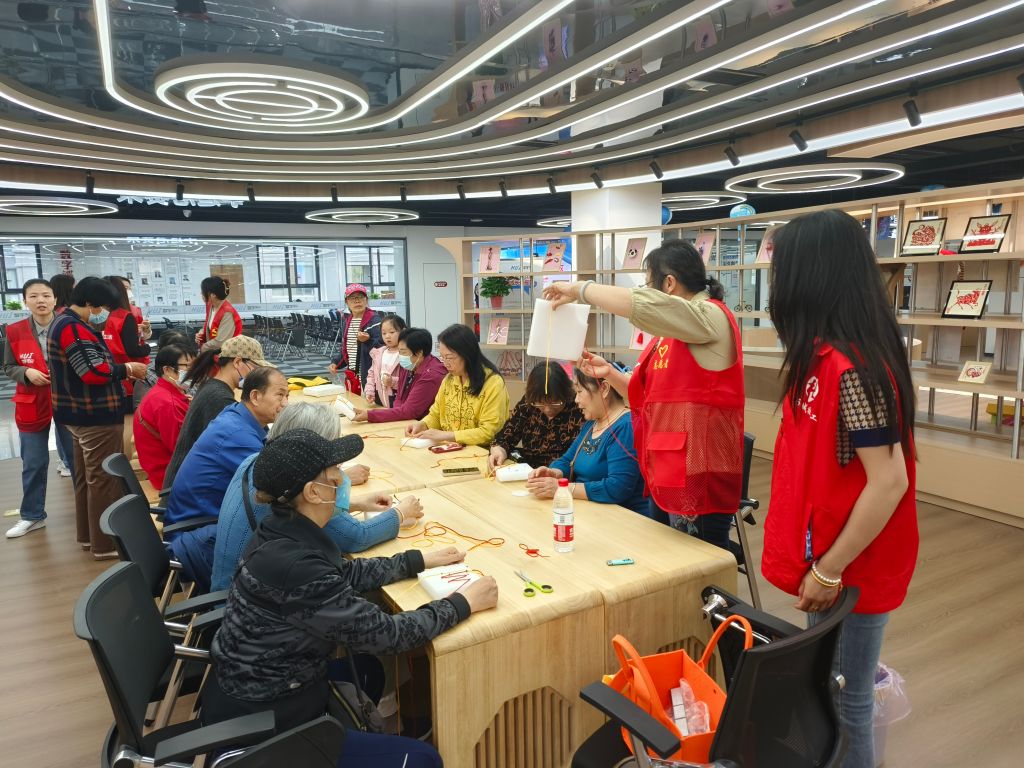 活动开展前期,工作人员积极链接溪山居志愿者周阿姨作为本次活动的主讲老师,从选线到绕绳、再到打结、打穗,周老师手把手耐心细致的教大家编织技巧。“老师,下一步再怎么编”,“老师,帮我看看这个,怎么感觉跟你做的不一样...”,学员们认真学习,虚心请教,有的三两成组相互指导,有的细心钻研,一副做不出来决不罢休的架势,有的提前完成向伙伴“炫耀”,大家在活动中不断感受手工艺术的魅力。