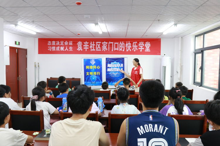 为预防未成年人沉迷网络,进一步提高未成年人网络安全意识和自我保护能力,引导青少年正确认识网络、正确运用网络,大力营造安全、文明、和谐的网络环境。近日,宁家埠街道社工站联合街道志愿者在袁辛社区开展“网络同心 文明同行”宣讲活动。