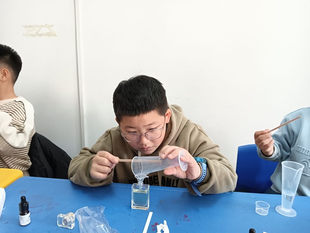 在手工制作环节,活动迎来了一个有趣的新内容——香水DIY。社工为孩子们准备了制作香水的原材料和工具,并详细介绍了香水制作的基本步骤和注意事项。孩子们瞬间被这个新奇的环节吸引,一个个摩拳擦掌,跃跃欲试。在制作过程中,孩子们充分发挥自己的创造力,小心翼翼地量取各种香料,按照自己的想法进行调配。有的孩子喜欢清新的味道,就多添加了一些柑橘类的香料;有的孩子钟情于花香,便在香水中融入了玫瑰、茉莉的芬芳。不一会儿,空气中就弥漫着各种迷人的香气。