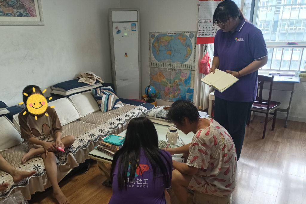 针对性服务延伸旨在了解服务对象需求的基础上开展个性化帮扶。社工站携带开学礼物与社工室的社工联络人一同走访了9位特殊的青少年。他们其中有父母是残疾的、有低保家庭、有残疾儿童还有事实无人抚养孤儿。由于原生家庭、生活环境、身体状况等多种原因,这些青少年在小组活动中都出现了不适应的情绪与行为。在社工站在入户的过程基于前期的普惠服务建立的信任关系很快就让服务对象敞开心扉,向社工谈起自己的压力与困难。特别是新一学期马上开始了,困境儿童服务对象特别是智力障碍的儿童要面临着比一般孩子更漫长的适应过程。因此社工在为服务对象建立个人档案记录他们个性化需求的同时,也通过心理疏导、陪伴支持,例如:与服务对象一同制定新学习计划、模拟新环境中将会出现的难事并引导其想出解决的办法......为他们提供了个性化服务。