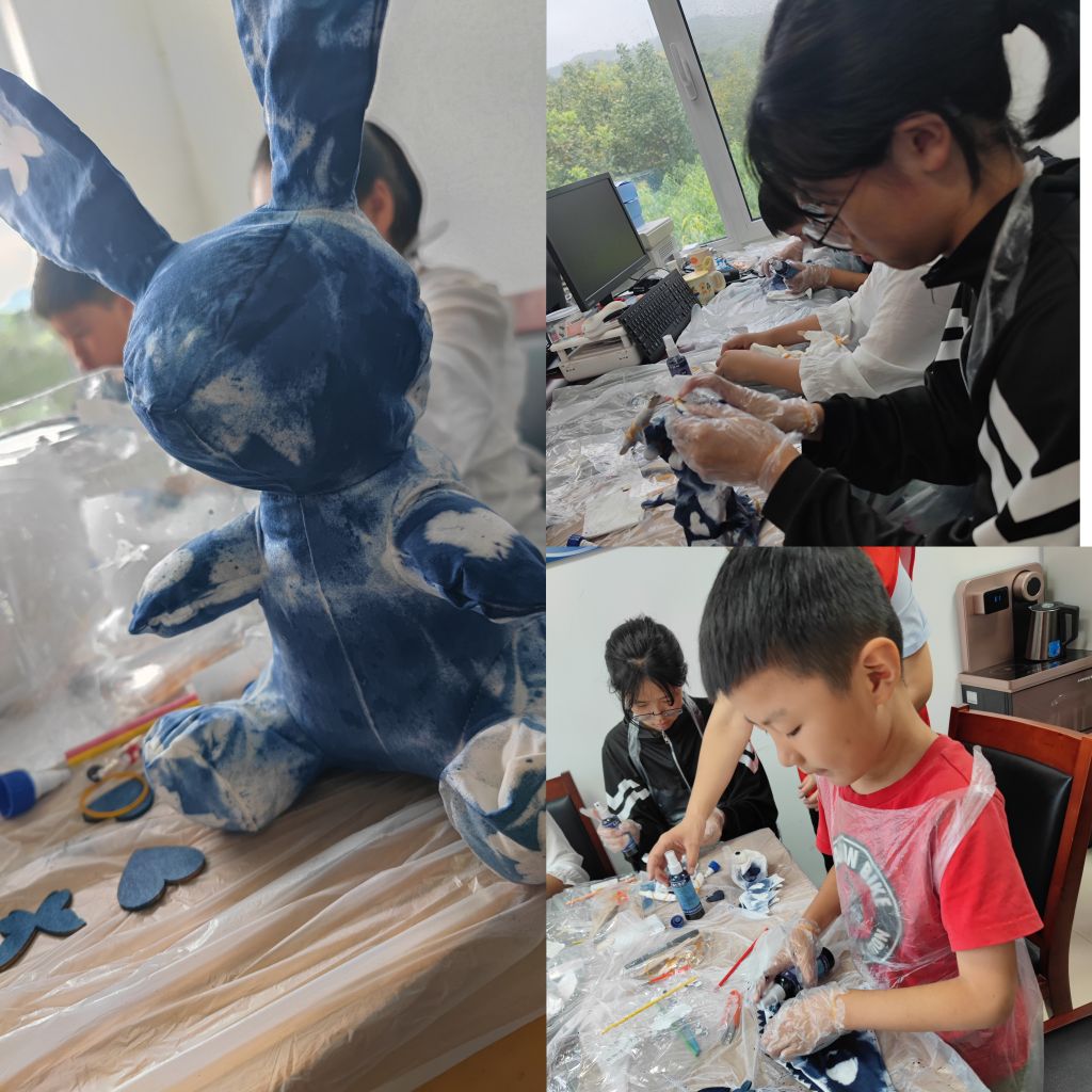 活动伊始,社工与儿童一同回顾暑假期间的趣事,并邀请儿童讲述各自在暑期阶段新认识以及学习到的知识,以及诉说对新学期的憧憬。其次,志愿者为儿童讲解了扎染的历史由来,让儿童了解到扎染艺术的传承过程。随后,志愿者拿出备好的材料,“颜料、橡皮筋、弹珠、夹子、剪刀……”,多样的物料展示,使得大家议论纷纷,“做出来会是什么样子的呢”,社工鼓励儿童,在实践中找到自己疑惑的答案。随后,儿童按照志愿者讲解的步骤,带着各自的疑惑,速速加入了制作队伍,不一会儿,待颜料经过充分上色、晾干后,大家非常期待地解开皮筋,看着一幅幅独有特色的图案组成的“小动物”呈现在眼前时,大家惊叹不已。“通过参加此次活动,让我对非遗扎染有了新的了解和认识,也让我明白了,在遇到困难与疑惑时,不要在原地等待他人为我们答疑解惑并提供帮助,而要勇于实践,在实践中找答案”,其中一个儿童说道。