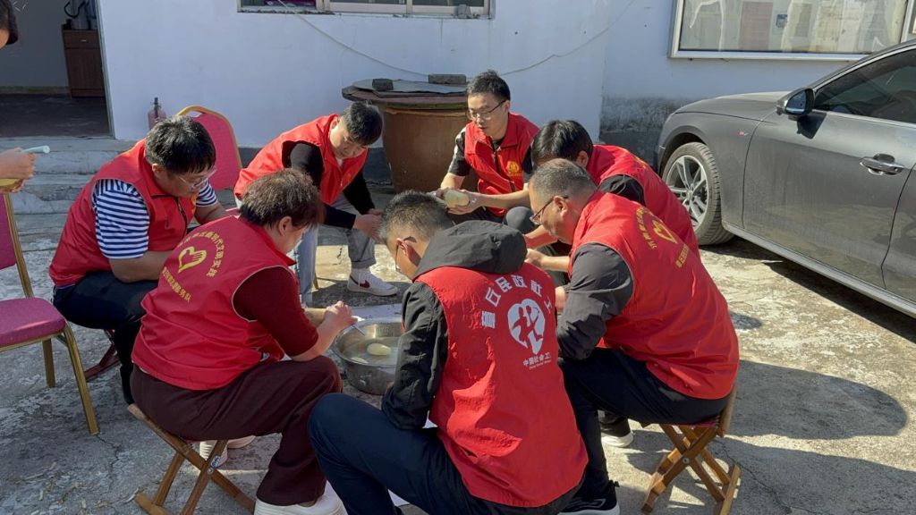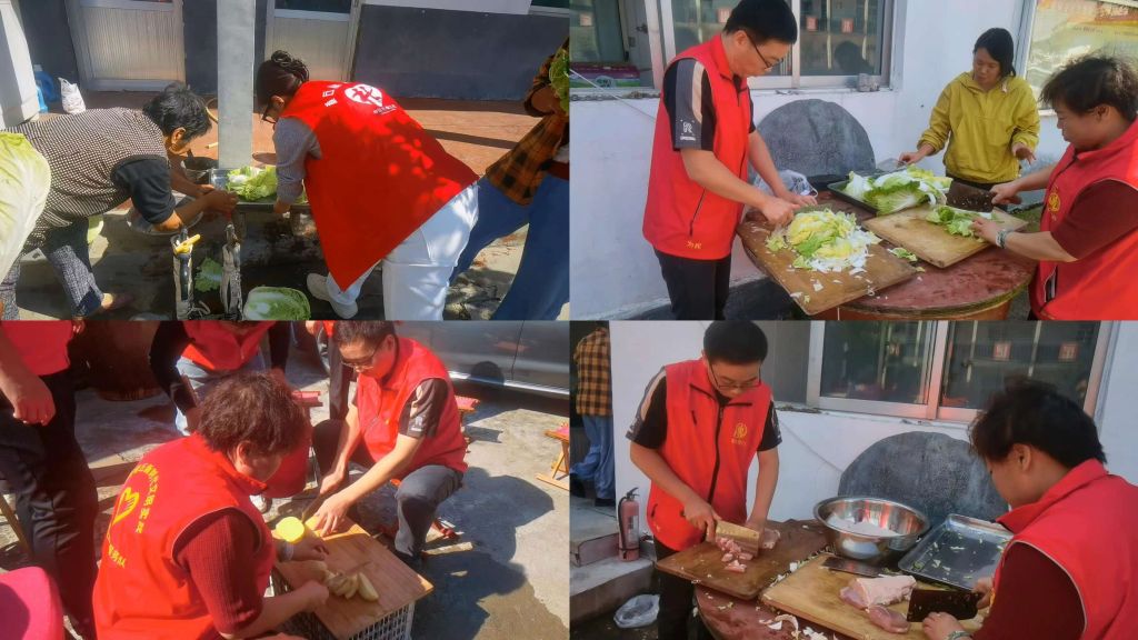 清晨,志愿者们携带着新鲜食材,与社工一起早早来到村居幸福院,开始午餐的制作。去皮、清洗、择菜、切菜...每一道工序都仔细地进行,大家配合默契,有条不紊的忙碌着,确保为居民提供一顿健康美味的午餐服务。