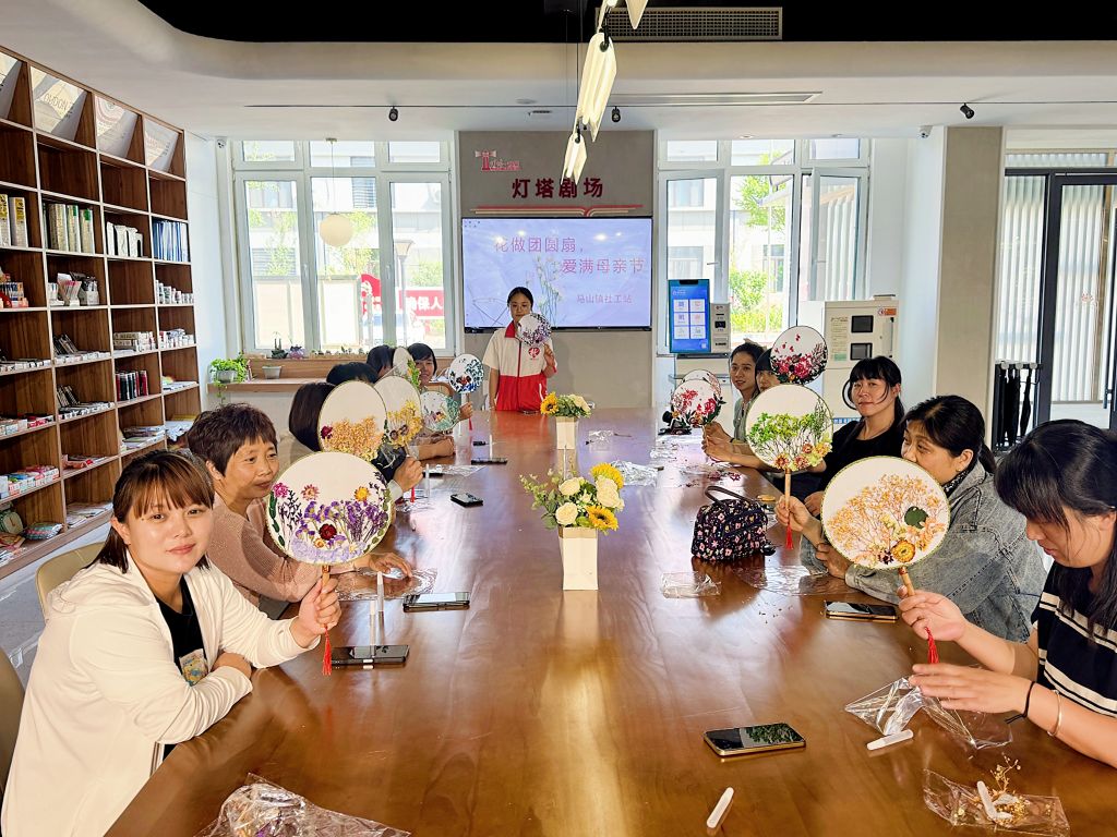 花做团圆扇,爱满母亲节——长清区马山镇社工站开展母亲节手工DIY活动