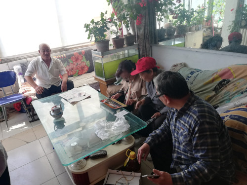 社区一行四人与田园艺术团代表们对军烈属家庭进行了慰问,为他们送去了慰问品家用油等。在走访慰问的过程中,社区工作人员对军烈属们嘘寒问暖,详细询问了他们的身体和生活状况,以及家中现在有什么困难需要帮助,让军烈属们倍感亲切和温暖;社区人员发现虽然家具、装饰陈列简单,但不免会看到很多上一辈遗留下的关于抗战期间的照片或用品,听着叔叔讲述抗日年代的故事,社区人员不免感慨、感谢对他们的家人为祖国建设做出的无私奉献,田园艺术团代表们也在最后与军烈属们一起进行了自拍合照。