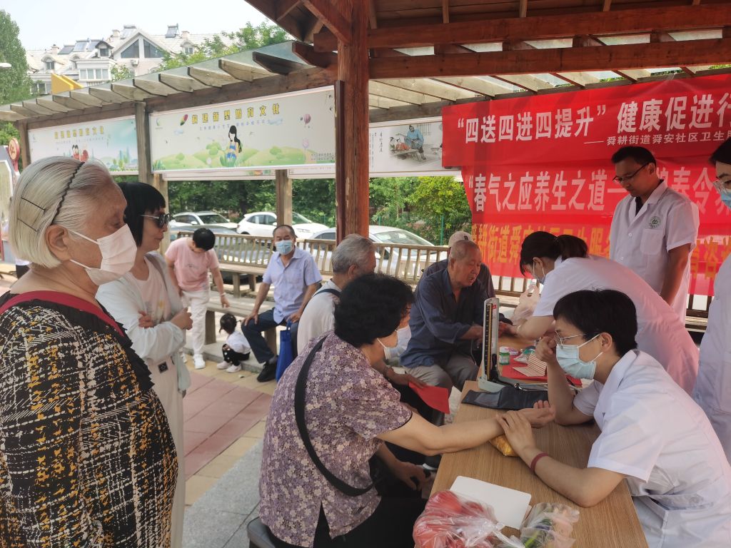 为更好关注社区老年人的身体健康,进一步增强老年人日常保健意识和疾病预防意识,让社区老年人在自家门口就能享受到免费医疗保健服务,5月21日上午,舜耕街道社工站联合舜安社区卫生服务站,在舜华文化广场开展了“关爱老人 守护健康”义诊活动。