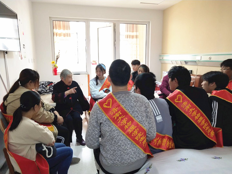 4月2日下午,济南大学志愿者来到福利中心分别探访几位参加过革命的老人,志愿者们来到老人房间后,老人热情的向志愿者们问好并招呼志愿者们坐下。志愿者们围坐在老人身边,都认真的听老人讲起多年前的故事。老人回忆起革命往事,真情实感、细细道来,志愿者们屏息凝神、侧耳静听,那些艰苦前行的革命时光、震撼人心的先烈事迹如同一幅幅画卷徐徐展开,生动呈现在每个人的眼前。