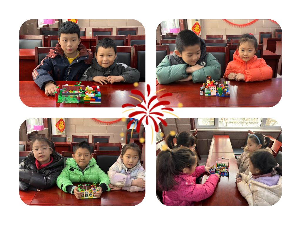 活动末期,社工站链接 “乐乐箱” 项目资源,为小营员们带来了一场想象力与创造力碰撞的年俗体验活动。社工为小营员们讲解了年夜饭的历史由来,从古代的祭祀传统到如今阖家团圆的温馨时刻,每一个故事都让小营员们听得津津有味。随后,小营员们分组进行年夜饭主题乐高搭建,小小的乐高积木在他们手中不断组合、变换。一桌桌丰盛的 “年夜饭” 便在他们手中呈现,有象征年年有余的红烧鱼、寓意团圆的丸子等。通过这次乐高搭建,小营员们不仅对年俗有了全新的认识和理解,更在与新朋友的合作中,对新年和团圆的意义有了更深层次的体会。