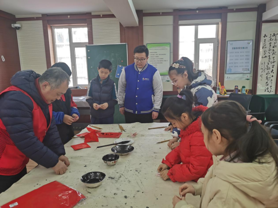 老少携手写福字,“志愿红”添彩新年红 ——槐荫区青年公园街道社工站开展青少年送福志愿服务活动