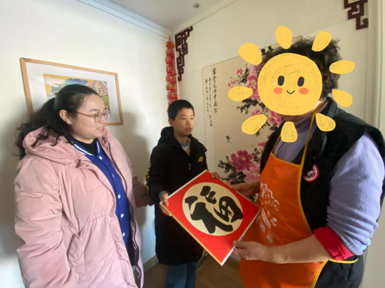随后,在社工的带领下,青少年志愿者带着通过自己的双手制作的福字日历、福卡文创还有春联、福字等,来到独居老人、空巢老人的家。孩子们为老人们送上礼物和祝福,祝愿老人身体健康、新春快乐,老人们喜笑颜开。小手拉大手,青少年们用行动诠释着爱心,用双手传递着温暖,为这个新春增添了一份活力和美好!